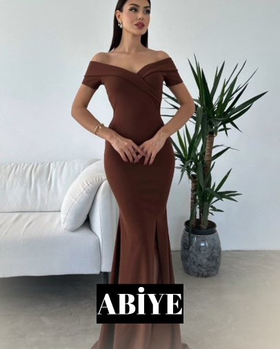 Tek Omuz Dökümlü Zarif Kahverengi Uzun Elbise