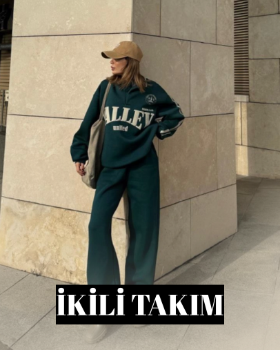 Üç İplik Yakalı Sweat Baggy Pantalonlu Takım - Yeşil